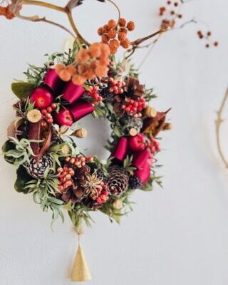 店内では、季節折々のナチュラルなドライフラワーリースやスワッグを販売。
